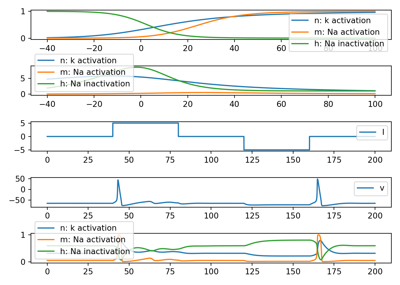 dndt = (n_inf(v[i - 1] - vr) - n[i - 1]) / n_tau(v[i - 1] - vr)